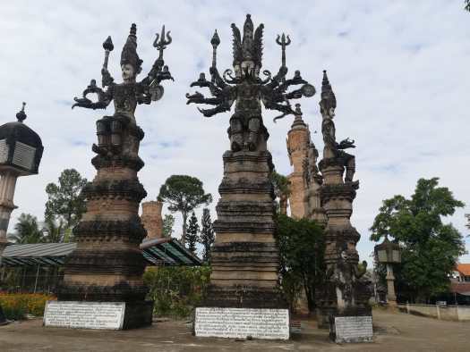 Op weg naar Vientiane bezocht ik Wat Phu Thok, een zandstenen heuvel die steil oprijst uit het vlakke landschap. Ik ben daar enkele jaren geleden ook geweest, maar deze heuvel vol Boeddhistische beelden en tempels is bijzonder genoeg om nog eens te bezoeken. Ervaren digi speurders kunnen proberen de foto’s en verhalen, die ik er de vorige keer op mijn website over gepubliceerd heb, uit de duistere spelonken van het internet omhoog te halen. Ik kan me voorstellen dat u daar geen zin in heeft. Lees dan gewoon verder.