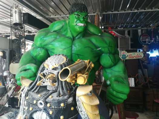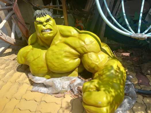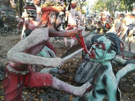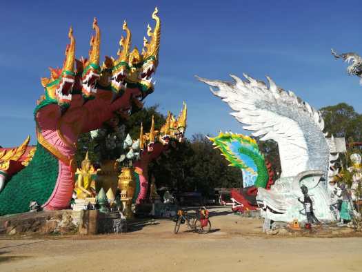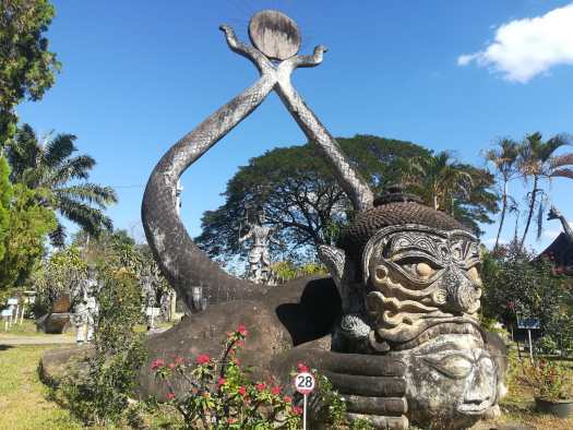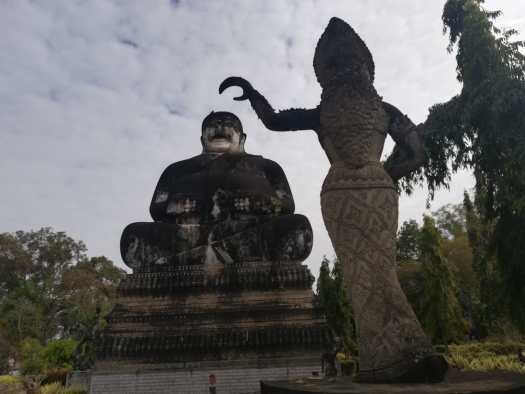 Foto 17: Een van de vele beelden in het Boeddhapark van Nog Khai. Dat enorme beeld daar achter was bij mijn vorige bezoek nog niet klaar. Nu nog steeds niet en daarmee is het veel zeldzamer dan al die fraai afgewerkte beelden door het hele land.