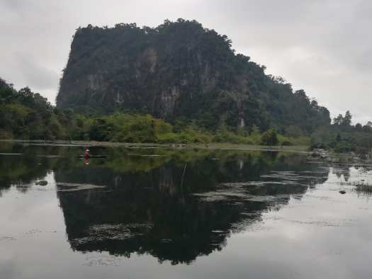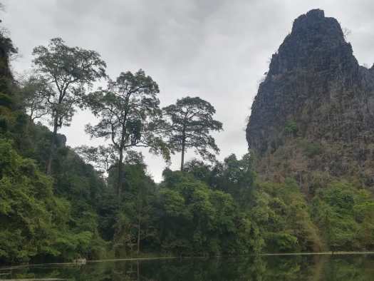 Foto 2: De Karstberg waarin zich de Tham Pa Fa grot (Boeddagrot) bevindt.
