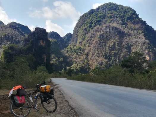 Foto 8: Op de terugweg naar Tha Khek.Na dat uitstapje naar de Tham Pa Fa grot had ik de smaak van dat karstgebergte te pakken en daarom besloot ik daar een paar dagen wat verder in door te dringen.