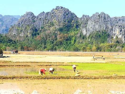 Foto 18: Rijst planters op de voorgrond, een echt zuidoostaziatisch plaatje!