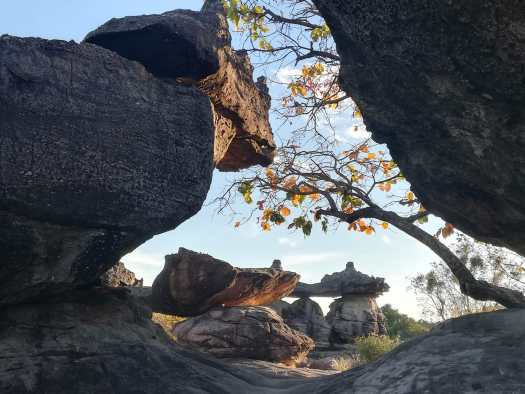 Foto 12: En nog één zonder die Santos om de kijker niet af te leiden van deze prachtige rotsOp deze tocht kwam ik een Franse familie tegen uit Avignon die met een wereldreis bezig waren: pa, ma en 4 kinderen van resp 7, 9, 11 en 13 jaar.