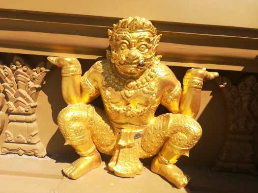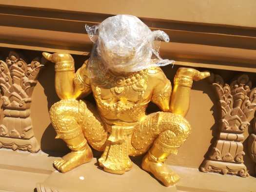Foto 2: Boeddhabeeld boven op een tempel.Voordat je zo’n fors Boeddhabeeld op een tempel plaatst, kun je als bouwmeester maar beter eerst een paar sterkteberekeningen maken, leek mij. Uit het feit dat de boel nog netjes overeind stond, was af te leiden dat de man zich niet verrekend had.