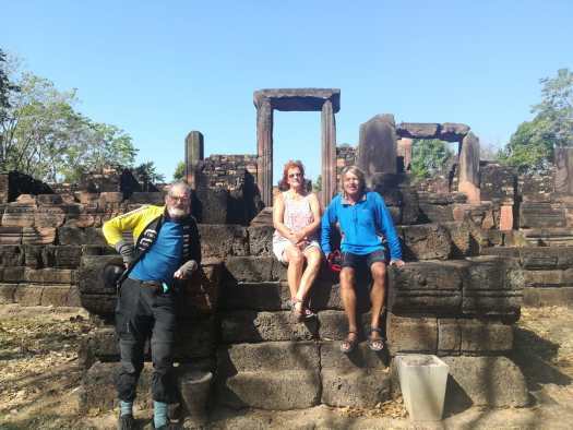 Nadat Cor en Jose, mijn twee fietsende landgenoten, naar Cambodja afgebogen waren, vervolgde ik, weer alleen, mijn terugtocht naar Bangkok. Een dagje fietsen bracht mij bij Ta Moen Thom, een tempelcomplex van de oude Khmer, dat pal op de grens van Cambodja ligt.