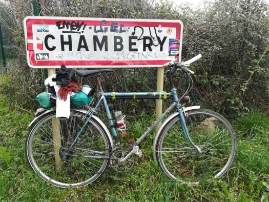 Aangezien het nog geen weer was om te kamperen of echte fietsreizen te maken reisde ik er gemotoriseerd heen: met de auto naar Steenwijk, met de trein naar Schiphol, met het vliegtuig naar Genève en tenslotte met de bus nog anderhalf uur naar Chambéry. Een halve wereldreis waarmee ik, de wachttijden inbegrepen, een hele dag bezig was.