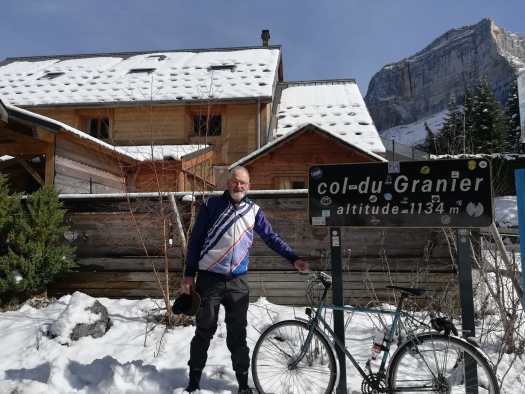 Foto 3: Mijn pijnbank. (Geen Brooks om even elke mogelijke twijfel weg te nemen)Dinsdag 28 maart, mijn eerste dag na de gemotoriseerde halve wereldreis, had ik geluk, want de zon scheen. Wel was het koud maar met 7 lagen kleren aan was er te fietsen. Ik koos voor de beklimming van de Col du Granier van 1135 meter (of 1164 meter volgens mijn eveneens ongeveer 45 jaar oude Michelinkaart). Zouden er in die voorbije 45 jaar 31 meter weggeerodeerd zijn?