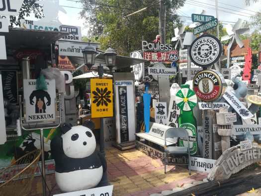 Foto 8: Een enorme verzameling van borden en allerlei reclame-spulletjes, zomaar ergens langs de weg, waarschijnlijk van een curiosa-verzamelaar..