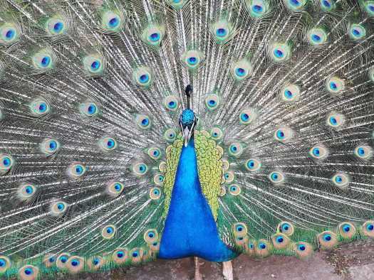 Foto 2: Nog eens die trotse pauw die speciaal voor mij zijn veren uitzette. Zo trots had ik een pauw nog nooit gezien.Een land verder bezocht ik een beroemde kathedraal.