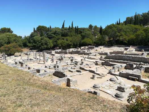 Foto 9: Een blik op de Romeinse stad Glanum. Helaas is het meeste enigszins, of eigenlijk wel heel erg veel, door de tand des tijds aangevreten, maar toen de Romeinen hier nog zaten zag het er natuurlijk een stuk gaver uit dan nu. Met wat fantasie en een fraai gidsje met mooie reconstructie-tekeningen zag ik het voor me zoals het er toen allemaal uitgezien moet hebben, met nog flink wat bedrijvige Romeinen er als toegift bij.