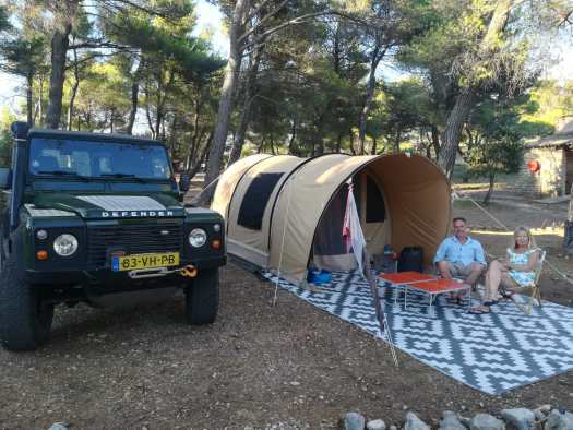 “Nee, we hebben een leuk ruim tentje gekozen voor het comfort. Vooral als het regent is het plezieriger dan dat gepruts in een klein tentje en bovendien kunnen we zo twee flinke branders en genoeg voedsel voor een week meenemen. Eet je vanavond mee?”