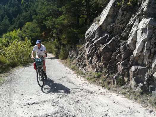 Foto 8: Bert niet in zijn element, want hier staat hij met zijn fiets op een laterietweg. Gelukkig voor hem was die beproeving slechts 50 meter lang.