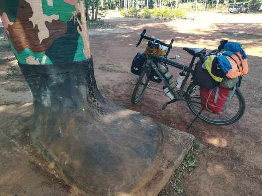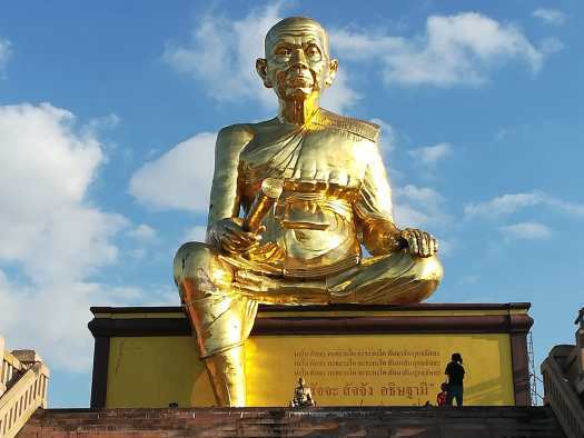 Foto 10: Zeker een reclame voor een merk vetersOp weg naar Sakhon Nakhon kwam ik langs een fraai Buddha park. Een gouden Buddha, zo groot als een flatgebouw, trok mijn aandacht. Daarom ging ik er even kijken.