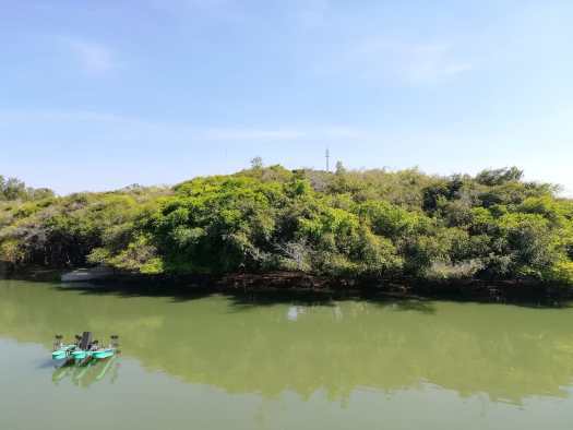 Vandaag was het echter een slechte dag: overwegend bewolkt en een harde kille wind die ik pal tegen had. Temperatuur volgens mijn almachtige platte telefoon 27 graden Celsius, maar daar geloof ik niets van. Dit knappe stukje digitale techniek, dat me elke keer weer versteld doet staan, slaat de plank volgens mij nogal eens mis. Ik houd het op een winterse temperatuur van 22 graden. In combinatie met die harde tegenwind was dat voor mij voldoende om er om half vier in de middag de brui aan te geven en een aardig resort met wifi op te zoeken, zodat ik meteen aan de slag kon met bericht 1. Dat werd ook wel de hoogste tijd, want al die mensen die antwoordden op die vraag waar de foto’s van het voorgaande bericht genomen waren, zitten natuurlijk al dagen te wachten op hun gelijk….. dat ze bij deze dus niet gekregen hebben. Volgende keer beter!