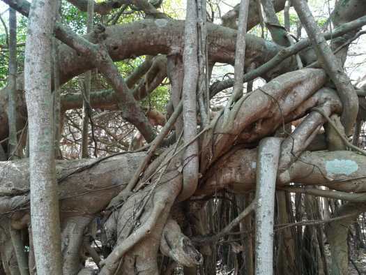 Foto 5: Ergens tussen alle stammen en takken van de Sai Ngam boom.
