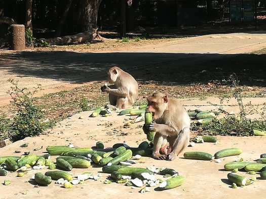Foto 17: Blijkbaar eten apen niet alleen pinda’s en bananen. Hier zijn ze druk bezig met komkommers.