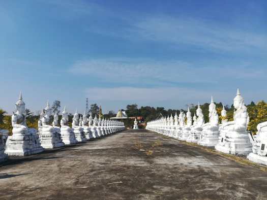 Foto 13: Het kon daar niet op, want op een flink terrein er achter, stond nog een heel woud van witte Buddha’s