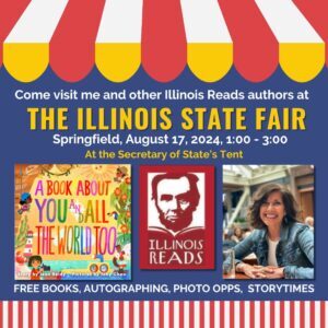 My summer fun continued at the Illinois State Fair where hundreds of free books were put in the hands of young readers and those who read to them. I was excited and honored that A BOOK ABOUT YOU AND ALL THE WORLD TOO was one of those books selected as a 2024 Illinois Reads title. Huge thanks to The Illinois Reading Council, Illinois Reads, The Illinois Center for the Book, The Illinois State Library and Secretary of State Alexi Giannoulias for making this happen. It was a wonderful, memorable, so good, very great day!