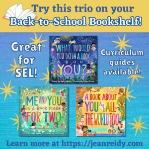 Are you looking for fresh reads for your back-to-school bookshelf? Try this trio! This series empowers kids to dream big and be the authors of their own life stories, while growing their social and emotional relationships too. Yes, there’s a lot packed into these sweet, little reads. And check out the FREE curriculum and activity guides for all three. These and more can be found at https://jeanreidy.com/.