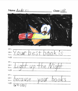 After a recent Skype school visit, I received a fabulous file of “Best Book” reports from a phenomenal first-grade class … which reminded me, author studies and opinion pieces are not just for big kids.