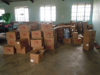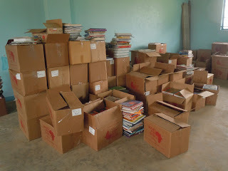 Here are a few pictures of the book situation right now. The first one is from when we had a big sorting party with a team that was here. There were three rooms like that with books spread out everywhere! It was crazy! The pictures of the boxes are what it is like right now. We are renovating a room right now that will be the on site school library. I am hoping it will be finished by August and then you will be getting lots and lots of pictures! I am meeting with a district official today about the community library so hopefully that will work out and we will give all of Iganga access to books. Yay!