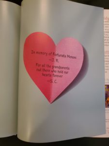 I dedicated A GRAND DAY to my grandmother who lived with us while I was growing up – Nonna Fortuna. Her name was perfect because I felt so very fortunate to have her in my life. She was a gardener and a gatekeeper. She read to me even though she barely spoke English. She knit my mittens, twirled my jump rope & loved me all day long. And I loved her.