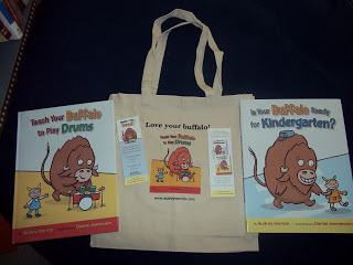 Item Description: The lucky winner will strike it rich. Because this prize package includes not only a copy of TEACH YOUR BUFFALO TO PLAY DRUMS personalized and signed by Audrey Vernick, a Buffalo tote bag, and 30 (that's right 30!) Buffalo bookmarks but also ...