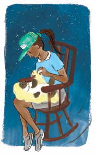 Lucy Ruth Cummins’ illustrations are powerful, made with crayons, charcoal, markers, gouache and computer finishes.