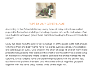 Baby animal names can often be so surprising. I think you and your young readers will have fun identifying those names below. While you don’t need my book Pup 681: A Sea Otter Rescue Story in front of you to do this activity, it’s always a bonus if you do. And you can buy it right here.