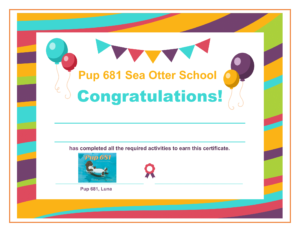 During my launch parties and book festivals for Pup 681: A Sea Otter Rescue Story, I invited young readers and listeners to attend “Sea Otter School” with me. So, with crepe paper kelp, beach balls, and shells for hiding, we learned so much about sea otter behaviors, that we earned our Sea Otter School diplomas and had a “wild” good time.