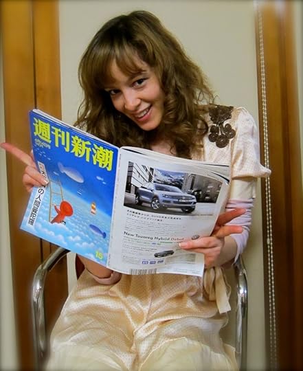 "I'm a big fan of the weekly magazine Shukan Shincho (週刊新潮) and their article is right on le money. A few weeks ago, I still had to go to auditions to get really excellent jobs, but now it is like I get to audition the clients. I'm very happy to be getting so much work and so happy I stayed. The tremors are a little scary but you get used to them. I am always happy to walk down the runway; I never run. I like the runway. I am not the type to run-away," she says laughing and demonstrating "model behavior."