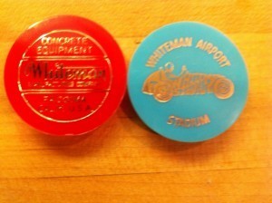 My stepfather's dad owned an airport in Pacoima, back in the day. Which included a stadium and race track. These bottle toppers were plastic and custom-made for the bottles at the airport bar. Click on the larger version and you'll see how the car spells out "Whiteman Stadium."