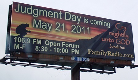 Initially I thought it was just an advertising gimmick for some Christian fundamentalist radio program. Prophets rarely allow themselves to be pinned down on a specific date because if when the world doesn't end, well, that can be pretty awkward.