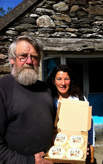 This was our morning field trip, across the road, to the right of the graveyard and up the hill. Milleens is the magical, soft floral cheese that we've eaten with our supper most nights. It also appears to be the favorite cheese of the royals - as was evident during their visit to the English market in Cork this year. Everything about the geography of this place, the men (the women were out of town) who make the cheese, and the taste of the cheese itself seems out of a storybook from another era.