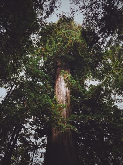 The trunk glistened on what was otherwise a modest redwood tree. Some of its branches were filled with greenery reaching upward and others were bare, slopping downward. Its bark was a little greyer than some of its neighbors, but ...
