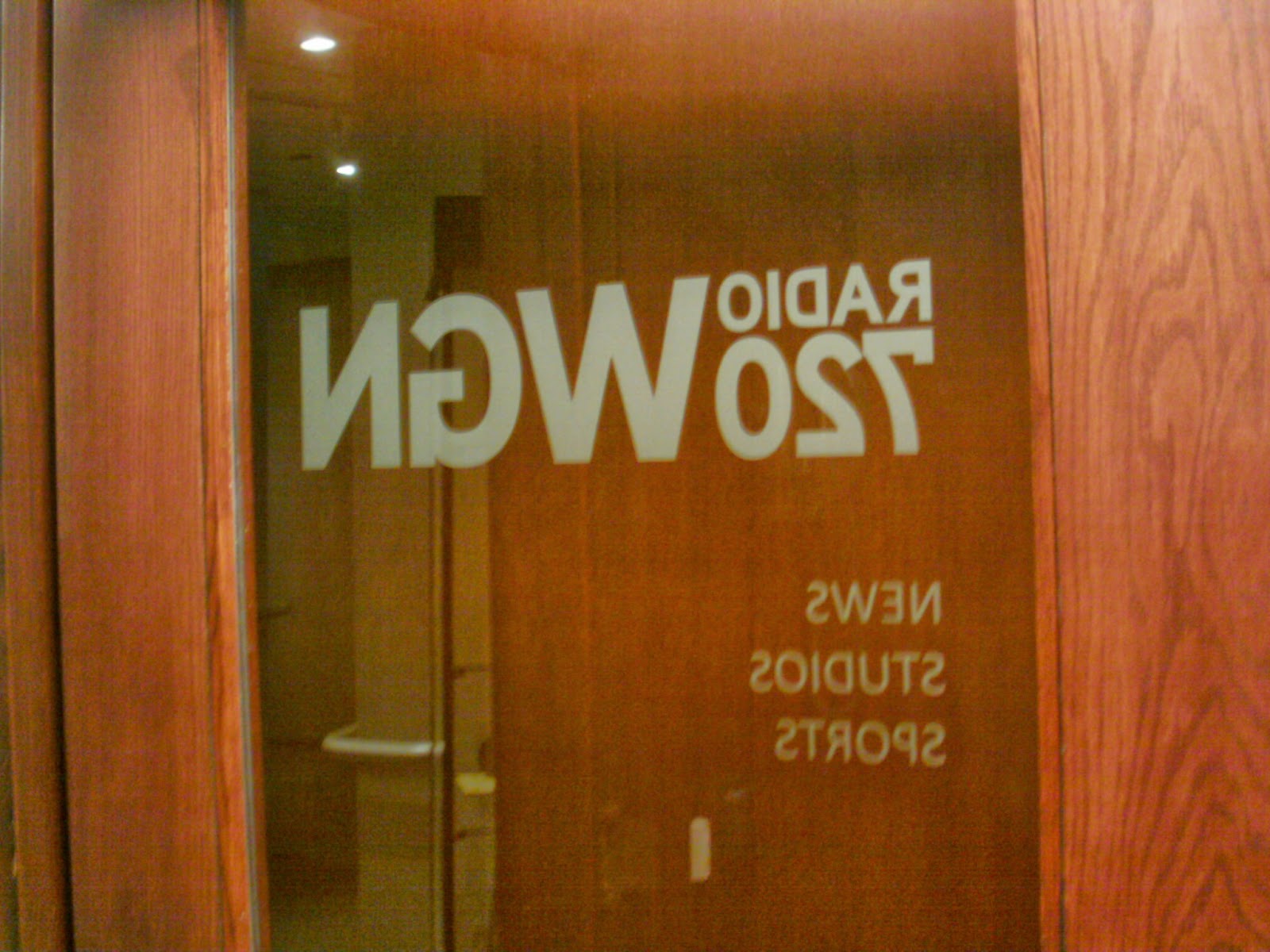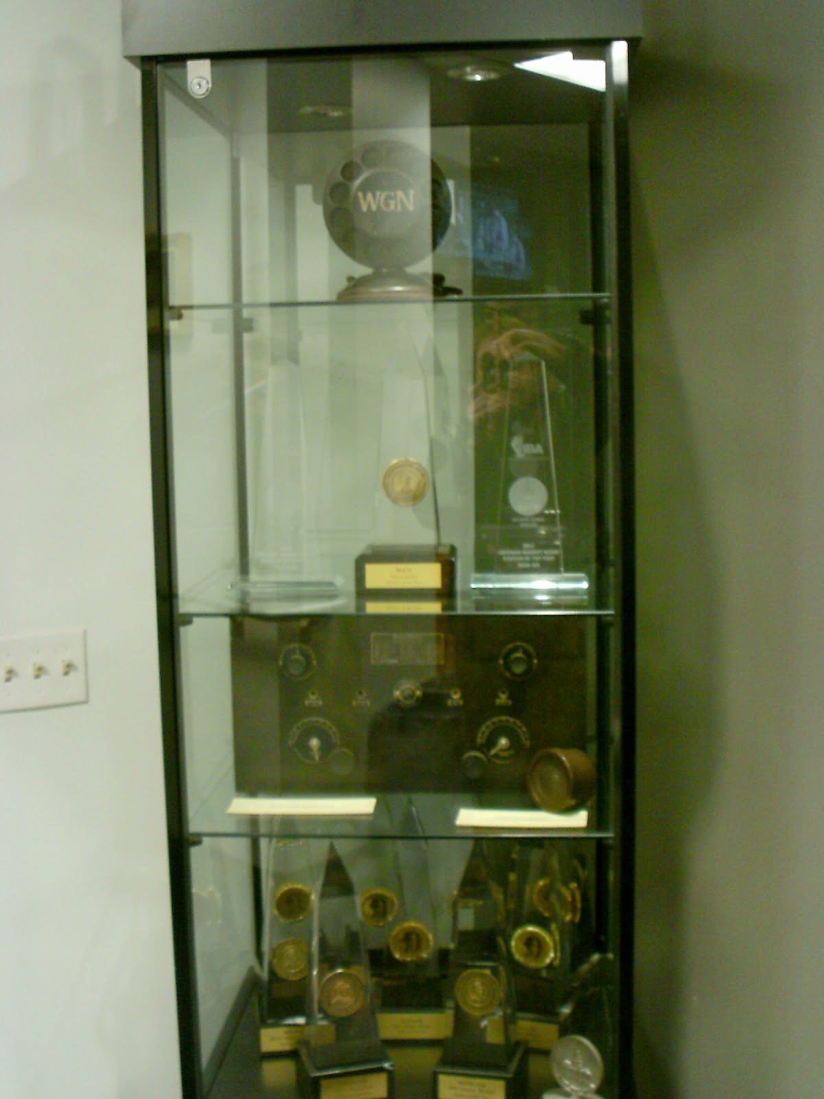 The open door to the green roomNick's producer Dan brought me upstairs, then down marble hallway (I'm telling you...history) and into a "green room" that was admittedly kind of casual after you've walked through an ornate lobby the size of a baseball diamond in a building built in the 1920s. But it was comfy. It also had some great old radio memorabilia.I'll admit I was never a huge WGN radio listener in the past. When I was younger, I was more a Top 40 station listener until talk radio host Steve Dahl burst onto the scene (later to be partnered with Garry Meier) and shook up local talk radio.
