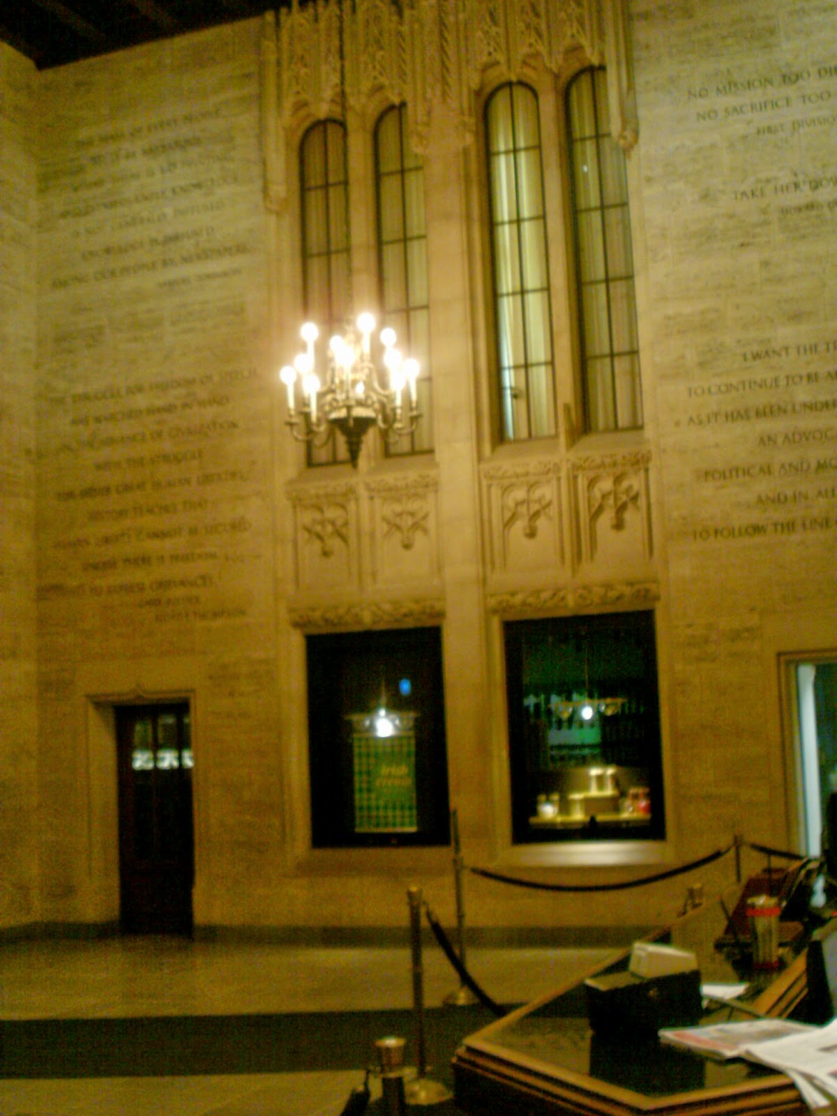 The lobby of the Tribune TowerI was floating as I entered the vast lobby of the Tribune Tower. And it is vast. The kind of place where footsteps echo dramatically as you walk up to the sign in desk.