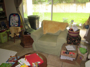 Today, someone in one of my writingcommunitiesasked for pictures of where we work. I have two spots in the house where I will sit and write. One is in the family room, the other is my office.