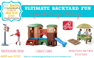 Don't forget to enter to win the GRAND PRIZE for this event, an ULTIMATE Backyard Prize Package courtesy of Step2, featuring their Home Run Baseball Trainer, a Clubhouse Climber, and Naturally Playful Sand & Water Table! This prize package is valued at over $700 and will keep your kiddos entertained all summer long! You can enter at Lindsey Blogs or Viva Veltoro.