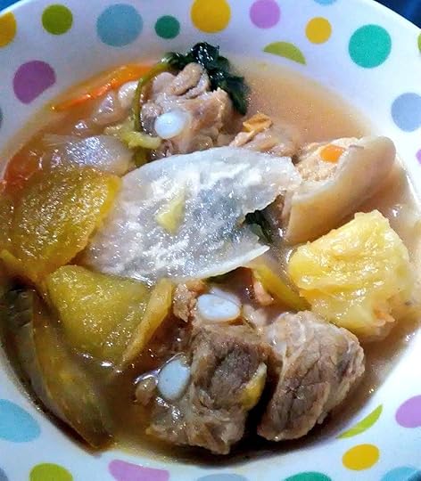 Kansi, served at the family dinner near the end of the book, is a meaty and unwieldy dish. Looks like bulalo because bones and marrow, but isn’t.