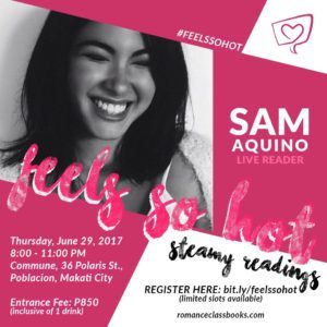 The next event will be on October 14, Saturday afternoon, at Commune in Makati again. Not steamy this time, but we’ll explore something new there too. If you’re into romance in English, or romance, or just anything about this post–you should come! Save the date.