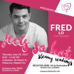 I almost didn’t write this recap. For the tenth version of the #romanceclass live reading events, we did something new: we made it adults-only, so we could have the actors read the steamy stuff. Previous events were held in open, general audience venues and while #romanceclass books (and maybe Filipino romance or “chick lit” in general) are perceived to be sweet and safe for work the number of authors writing more adult themes and scenes is actually growing. We saw it when we began proper categorization for the romanceclassbooks.com site and noticed that nearly half the catalogue could be tagged as Steamy, and I noticed it when I began to edit previous live reading excerpts prior to a performance, to “clean up” the language a little. The fact is, we are starting to accumulate a significant number of titles featuring edgier author voices, sexier situations. Filipino authors of romance in English are writing this. It was time to highlight this, rather than “clean it up.” One of the authors in our community (Kate Sebastian) challenged me to do this and charge an entrance fee for it.