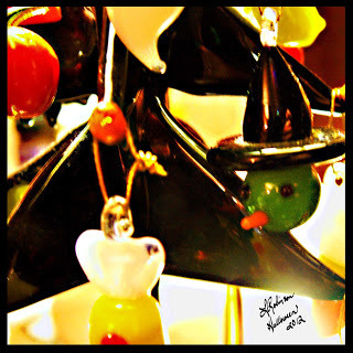 All Hallows Eve is the night jack o'lanterns with candles line the path to your door so the ancestors can visit. I light an orange candle on my desk, and imagine what Mom and I would do today. She'd like the art glass tree from Ariana Gallery I have on my black Motawi tile table, and the collection of essential oils on her Pewabic tile coaster. She loved tile. So do I. We may visit an art tile store. Lunch at Pronto in Royal Oak, where she would have the vegetarian lawash she always ordered. Or at Amadeus in Ann Arbor, where she has never been and I have to guess what she may order there. She will wear her witch hat. I will wear my catwoman mask with my glasses on top. We will laugh, share stories of Halloween birthdays long ago. Dad's joke he told when people first learned her birthday was on Halloween. He'd say "yeah, she rode in on a broom." Tonight I'll put dinner on the table with her ceramic pumpkin hot pads, and later, I'll go to sleep remembering the woman in the witch hat on her birthday, with love.