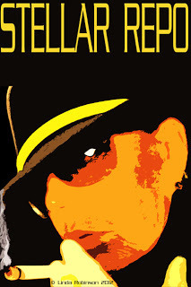 I'll do just about anything not to write. Essays I write are about avoiding writing. It's National Novel Writing Month. Got a good start with a terrific idea, whizzed through day one. Then nothing. I lit the writing lamp. Drank tea. More tea. Sharpened pencils, dusted the desk, lit candles, got out a new notebook, cleaned the bathroom, washed kitchen walls, changed out the wreath on the front door. Made two dinners one nght, so I could write through dinner the next. Today I had to costume. The novel I'm not writing is Stellar Repo, a space noir scifi adventure, loosely based on my stint as aircraft collection manager for MNB. I had no idea what I was in for, but my learning curve was hilarious. Repossessing aircraft. Friends suggested I write those stories. Young Emmett, my friends' TV show producer said, do it in space. Space noir. Princess Leia as Sam Spade. Noir requires a black fedora. Check. Cigarette. check. Scruffy beard shadow. Check. Sunglasses, ditto. The sigreet is a rolled 3x5 card, set on fire. I had to draw the smoke with a dry media Photoshop brush, smudged. The stubble was a burnt cork, just like Dad used to do when we were kids, and it rained every Halloween, forcing us to go trick or treating in our raincoats and Junior Fire Marshall hats as smoky firemen. Space noir. Next up: the cover of Stellar Repo. And an excerpt.