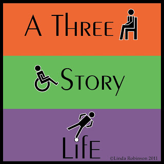 This is the original art for A Three Story Life. We were in a townhouse then. Scott on the top floor, Dad in the middle, and me in the Artist's Dungeon. We had to move in 2014 because neither of the menfolk could make use of the stairs any more. Dad died in 2017 so the art (when I blog which is seldom) has a black band in the midfloor. I'm still in the Artist's Dungeon.