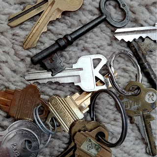 Each day I choose something to put in the garbage bag sitting next to the pile on the floor. My father kept keys to things he no longer owned, including car keys. There are stories to those keys. But the stories are not mine. I threw them all out, inspired by Stu in The Stand (which I just reread) who–broke legged and dying in the wilderness–goes through his pockets and finds a keyring with keys that will open nothing. He throws them into the gulch. I did likewise.