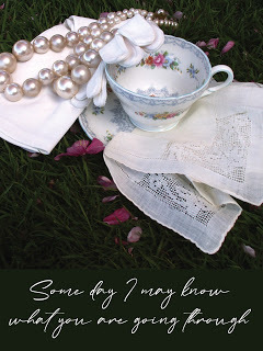 I also photographed my great-gramdnother's and grandmother's teacups. And my grandmothers's and mother's gloves. And their pearls. And their handkerchiefs. Three generations.