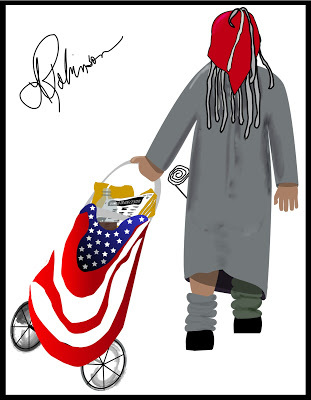 I drew The Patriot on September 12, 2001 weeping. The world experienced one of the most horrific attacks on American citizens the day before. To this hour I have seen no images of that tragedy. The woman I worked for and I listened to the radio all day. We were locked in a building in Grosse Pointe, Michigan. A negligent delivery person had left a large package in the parking garage with no address label, and as the morning's events were seen and heard around the world, a security guard reacted, and local authorities shut down entry and egress from the building for 11 hours. It was a portend of overreach to come. We heard the anguish, shared the pain of that day with our country only on the radio. I talked with a friend on the phone who was counting on me to go to her house and keep her young children from seeing the television. We all cried for victims of that attack, and then we cried for what was to come. What the woman I worked for, my friend and I shared along with the agony was the knowledge that America would respond next day, without accurate intelligence, with political zeal, and for a long time.I wish we'd been wrong.