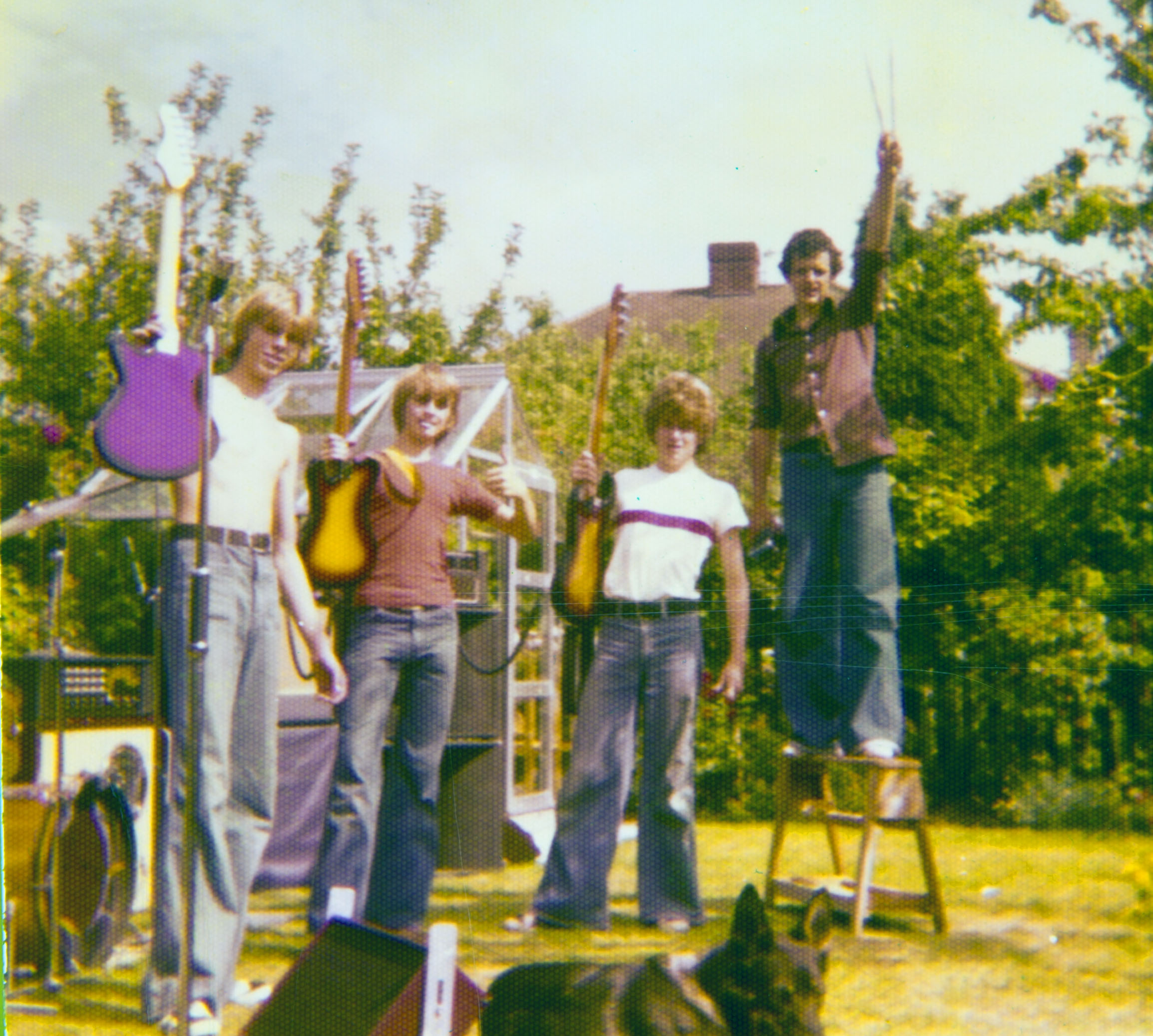 That’s me on the left – shirtless as it was a hot summer afternoon. My legs seem to go on forever – no wonder my parents called me hollow legs! Next to me is Andy Wells, then Tim Pybus and finally Mike Smith standing on a chair with his drumsticks. Sadly, Andy is now playing concerts in the big sky now, but I did see Tim a few years ago at my Fathers funeral. Mike Smith I have lost track of completely.