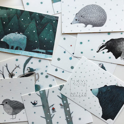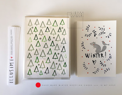 HAND-MADE WINTER GREETING CARDS —original little artworks on folded paperpencil, watercolour and some little acrylic dots,lots of love in every different drawing, ▶︎ available in my ONLINE SHOP * they come along a nice envelopeeach one chose to fit the artwork