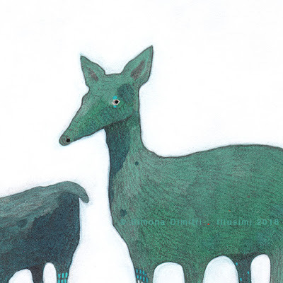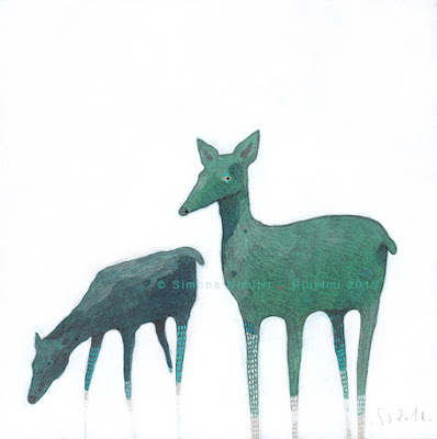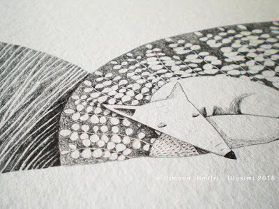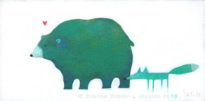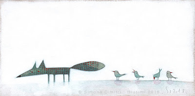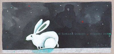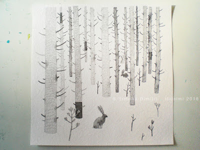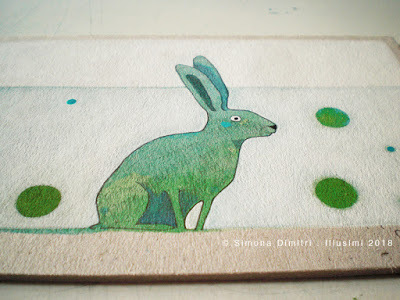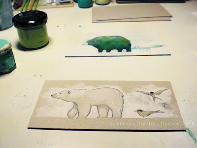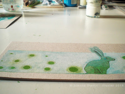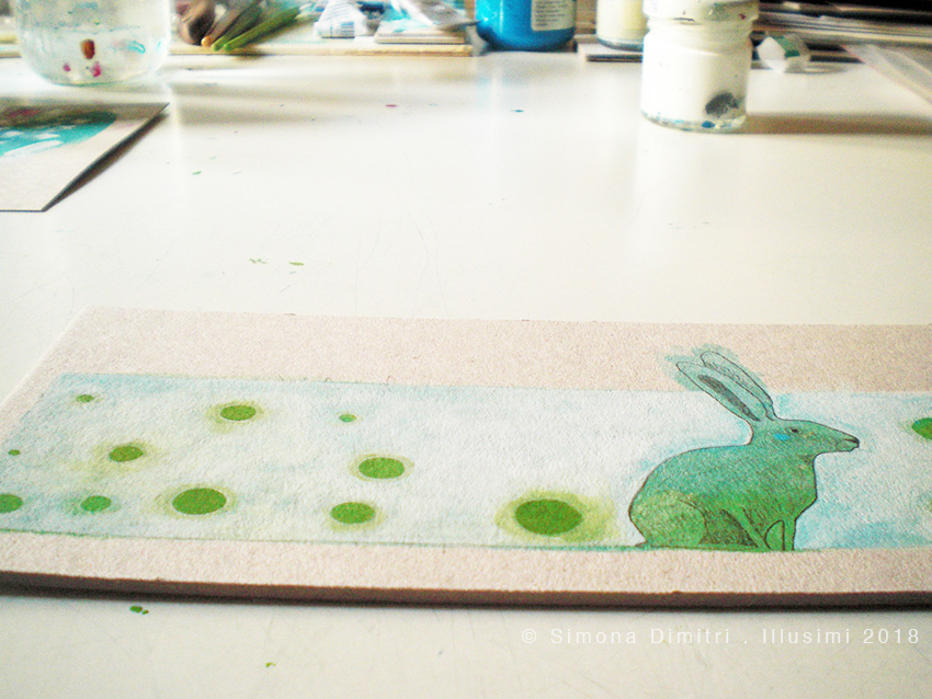 mixed media on grey (heavy) cardboard, 20x10 cmhere below, during the work...